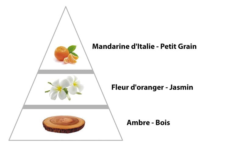 Le parfum s’ouvre sur des notes pétillantes de mandarine d’Italie et de petit grain.