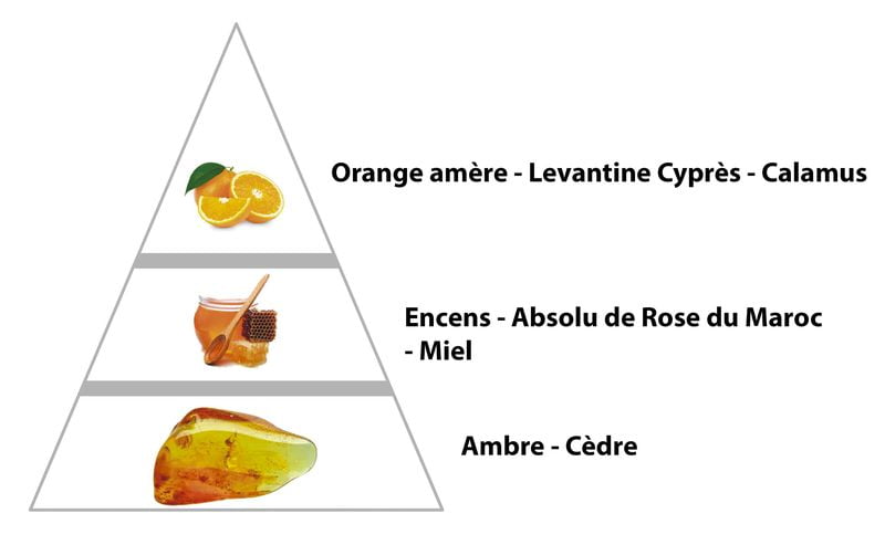 Ce parfum oriental luxueux s’ouvre sur des notes d’orange amère, de cyprès levantin, de calamus et d’essence de ciste.